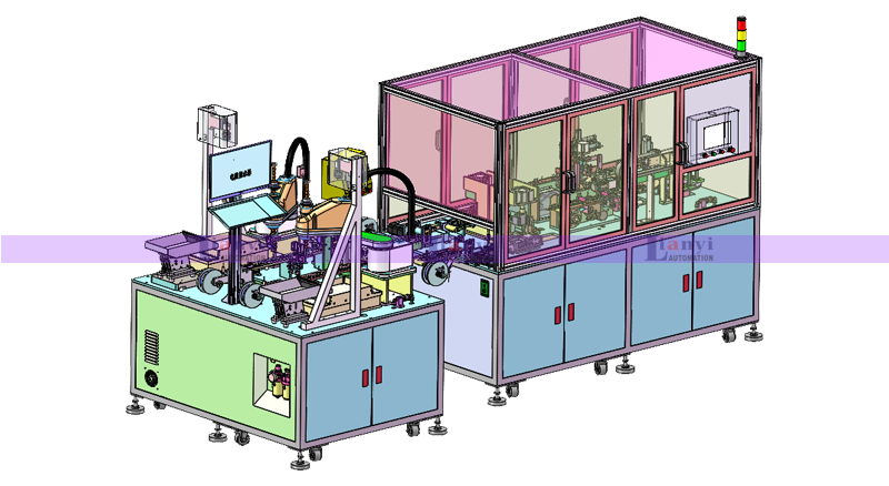 1、自動(dòng)送料:通過(guò)柔性振動(dòng)盤輸將金屬片材送入待選區(qū)。