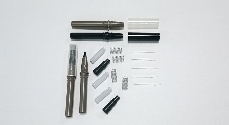 第一站是供料站,在這個站點上,各種眼線筆零部件(如筆管、筆帽、筆芯、刷頭等)根據(jù)規(guī)定的數(shù)量和配比,通過供料器的傳送帶送入生產(chǎn)線。供料器會根據(jù)預(yù)先設(shè)定的程序和節(jié)拍,按照順序?qū)⒘悴考┙o到后續(xù)的工作站。